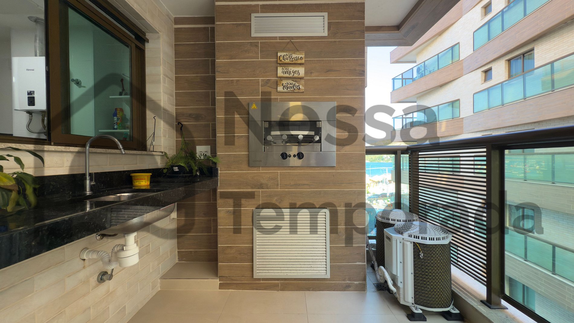 -Terraza privada con parrilla y mesa de comedor para 4 personas, con una vista espectacular de la playa y la piscina del condominio. Por la noche, el ambiente se vuelve aún más especial con luces cálidas y el sonido del mar de fondo.
