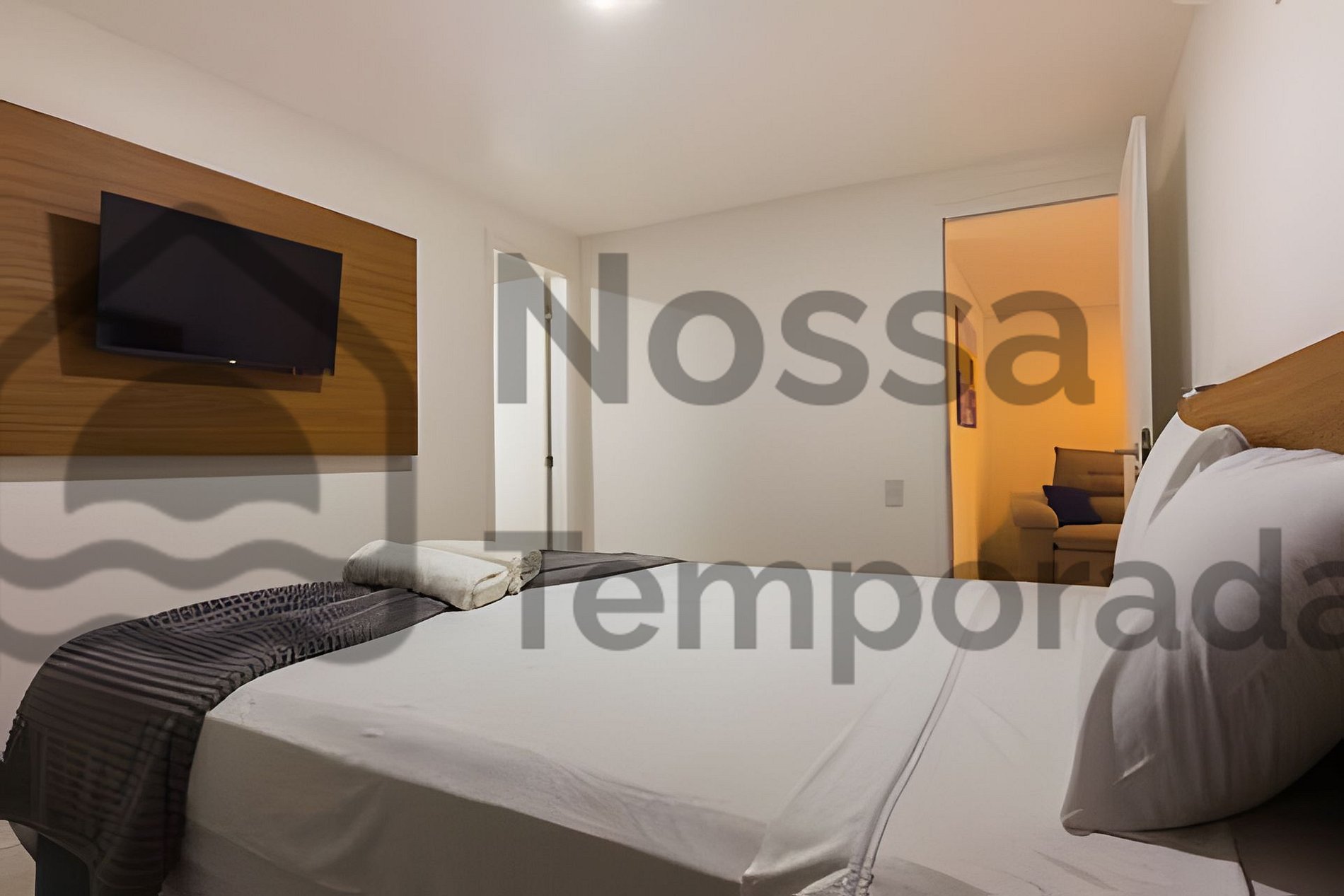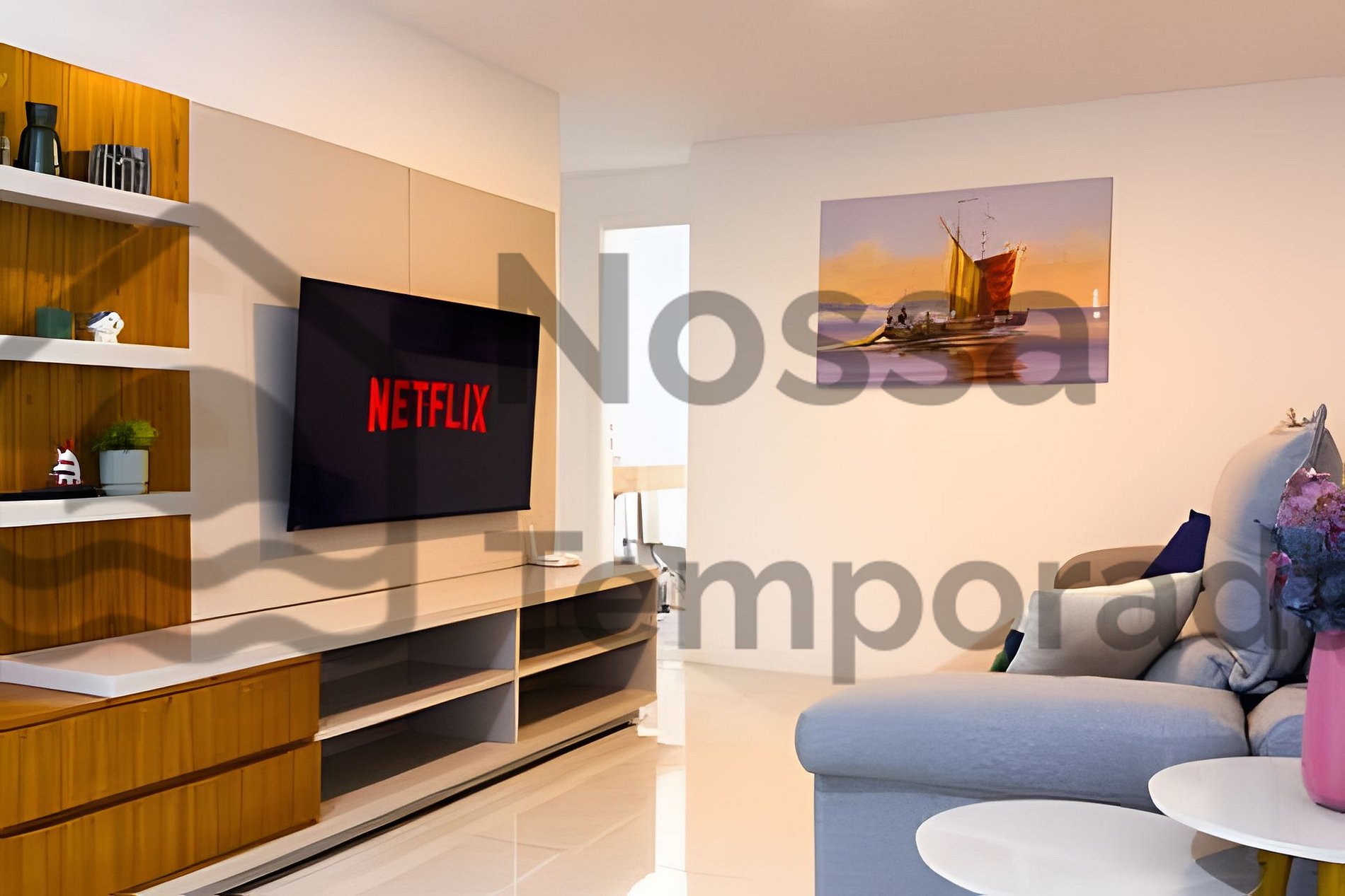 •Sala de estar: sofá-cama, TV e espaço para relaxar.
